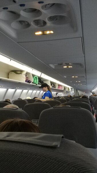В-пятых, разгон и набор высоты были очень резкими. То же самое — с посадкой: тебя буквально вдавливает в кресло, уши закладывает с необычной силой. На борту было много детей, и во время этих маневров в салоне стоял непрерывный плач и крики — малыши, видимо, пугались.