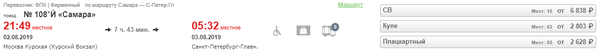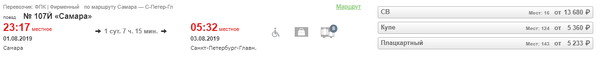 На примере поезда на 1 августа хорошо видно разницу: из Самары в Петербург доступно много мест, а из Москвы — значительно меньше.