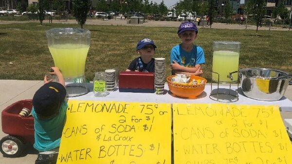 Типичный американский детский заработок: lemonade stand. Дети продают лимонад.