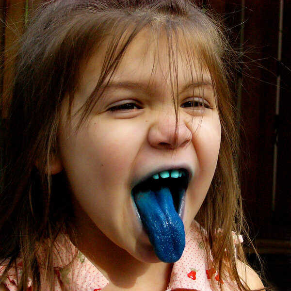 Количество искусственных красителей в праздничных сладостях порой пугает. На фото — результат после употребления таких леденцов.