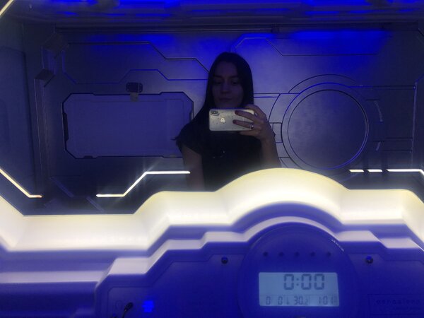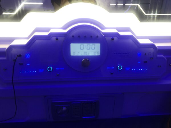 Для начала я взяла капсулу всего на два часа — мало ли, вдруг внутри окажется темно и не по себе? После оплаты и краткого инструктажа я начала осматриваться. Капсула представляет собой изолированную кабинку, оборудованную будильником, зеркалом, телевизором, системой вентиляции, индивидуальными лампами для чтения и даже яркой синей подсветкой (к счастью, её можно полностью отключить).