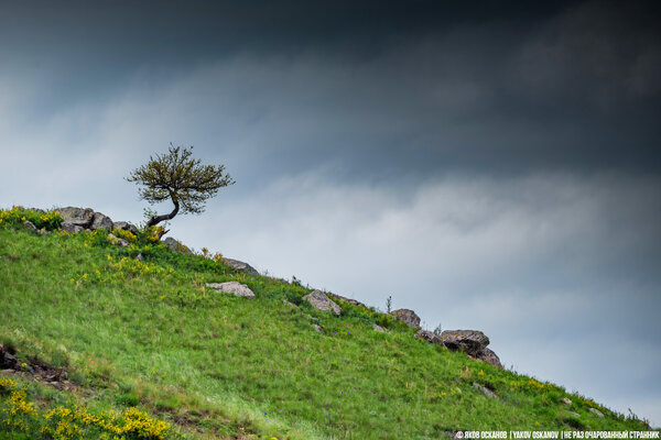 Впервые я увидел это место лет двадцать пять назад, когда навещал отца в колхозе — он тогда решил попробовать себя в фермерстве. Остатки древнего горного кряжа, словно рёбра какого-то доисторического существа, поднимались из зелёного степного ковра. Вертикальные пласты земли выглядели невероятно живописно, но один из них особенно привлёк моё внимание — на нём росло причудливо изогнутое дерево.