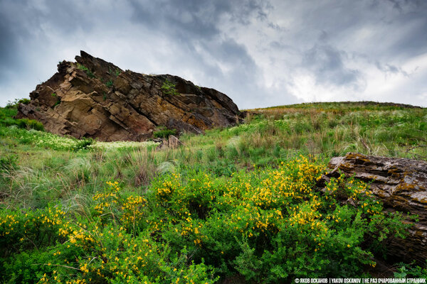 Виды вдоль склонов просто захватывают дух. Особенно сейчас, в пору цветения степи, когда сквозь буйство диких трав проглядывают древние каменные породы...