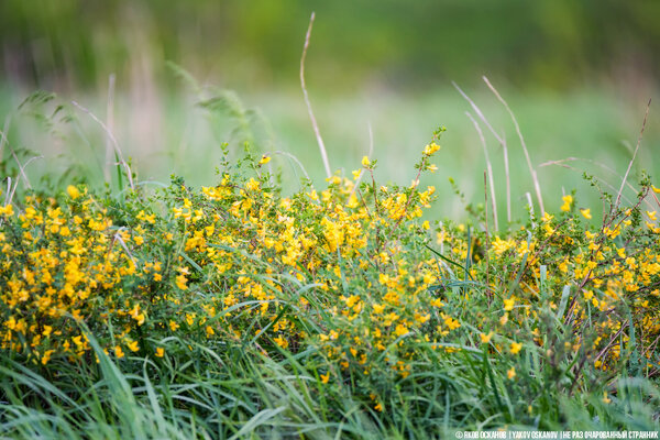 Проехав деревню насквозь, мы оказались у живописной балки, которая вся поросла зарослями цветущего дрока.