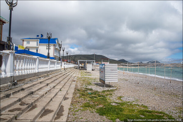 Недавно в «Фейсбуке» один известный крымский блогер писал, что набережная Коктебеля в ужасном состоянии и к сезону её не привести в порядок. Честно говоря, я не понял, о чём он. Набережная в полном порядке: аккуратная, чистая, без следов зимних повреждений.