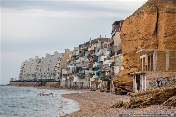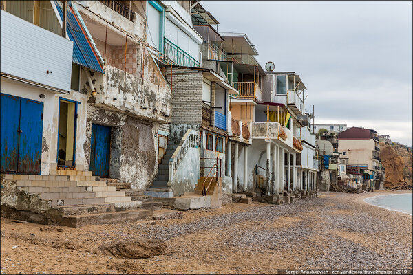 Но что происходит на самом деле? Предприимчивые строители этих курятников-ночлежек продолжают осваивать опасный склон на пляже, с каждым годом добавляя всё новые и новые трущобы. Причём делают это на осыпном склоне, где уже не раз случались обвалы грунта, иногда с трагическими последствиями для отдыхающих.