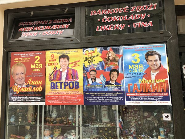Карловы Вары славятся своими целебными источниками, и я предполагала, что здесь собираются туристы со всего света. Однако оказалось, что большинство отдыхающих — русские и выходцы из стран СНГ. Продавцы в магазинах, гиды, администраторы в отелях часто говорят по-русски. На улицах повсюду реклама на русском языке.