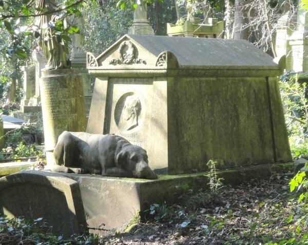 Могила боксёра Тома Сэйерса, на которой так и остался ждать хозяина его дог
