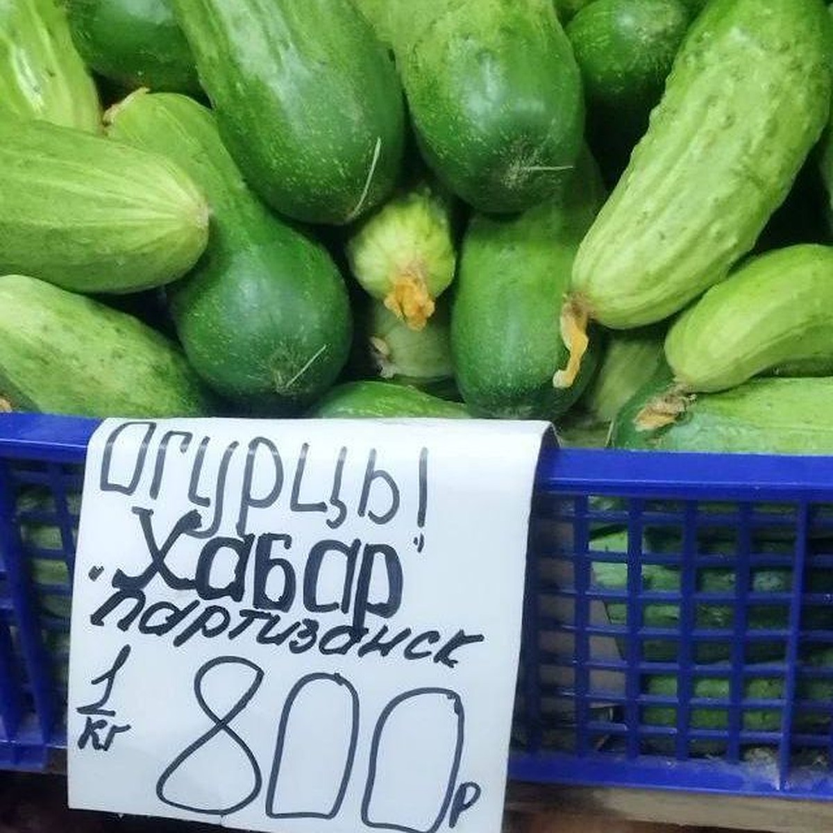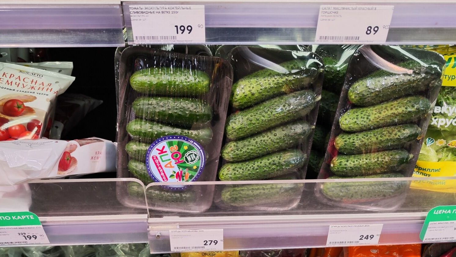 Вот цена за два огурца — 229 рублей. И это ещё летний, относительно «низкий» сезон! Зимой стоимость взлетает в два-три раза. Например, в феврале огурцы могли доходить до 1000 рублей за килограмм, а местные, парниковые, — и вовсе до двух тысяч.