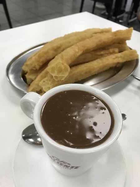Впервые я попробовала чуррос в Мадриде, в знаменитой Churrería San Ginés. Было очень вкусно и не так дорого, как я ожидала, учитывая популярность места. Но самые лучшие чурросы и потрясающий шоколад я нашла в маленьком кафе рядом с церковью Святого Франциска Великого — это было просто божественно.Во время поездки по Андалусии я ела чурросы в разных городках — везде они были разные, но всегда очень сытные. После такого завтрака есть не хочется часа четыре. Самые вкусные чурросы в той поездке я попробовала в Малаге, в нетуристическом районе. По утрам, особенно в выходные, там яблоку негде упасть — полно местных жителей. Атмосфера уютная, почти домашняя, а чурросы — просто объедение.