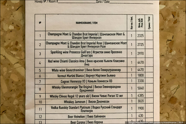 Хорошо, что у меня хватило благоразумия сначала изучить прайс-лист, прежде чем потянуться за той самой миниатюрной бутылочкой виски в холодильнике! В противном случае момент выписки из отеля стал бы для меня крайне неприятным и финансово болезненным сюрпризом.