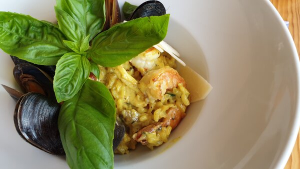 Итак, мы пришли в заведение, дождались официанта и сделали заказ. Моя супруга выбрала ризотто с морепродуктами и мидиями.