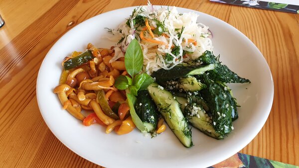 Я начал с тарелки солений — что-то лёгкое, чтобы подготовиться к главному блюду.