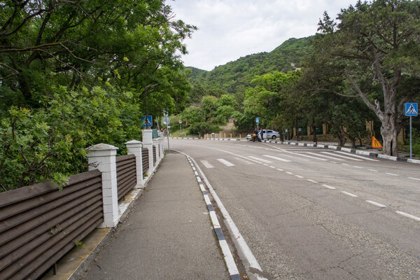 Так и пошли. Отдельной туристической тропы нет, поэтому двинулись вдоль трассы по пешеходной зоне, которая довольно быстро закончилась.