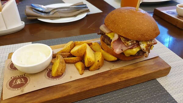 Я же выбрал фирменный бургер за 390 рублей. Да, дороже, чем в сетях быстрого питания, но и сравнивать его с обычным фастфудом нельзя. Это совершенно другой уровень качества.