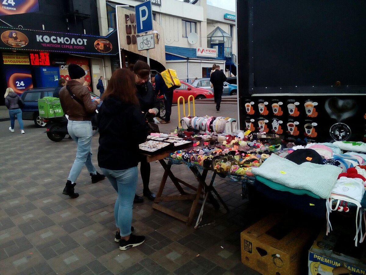 Украинцы продают самую разную мелочь (спичечные коробки, жвачку и т. д.) возле каждой станции метро, и просто на улицах. Люди пытаются так заработать на еду. Опять же, в России есть рынки, где торгуют бабушки\дедушки, но все-таки это стало более цивилизованно и китайскими мелкими товарами у нас уже не торгуют с табуреток у метро.