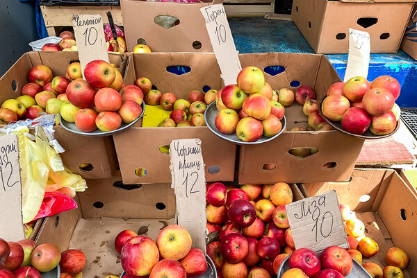 Всего 10-12 гривен за килограмм отличных, сочных, местных яблок. В переводе на российские рубли — примерно 24-27 рублей...