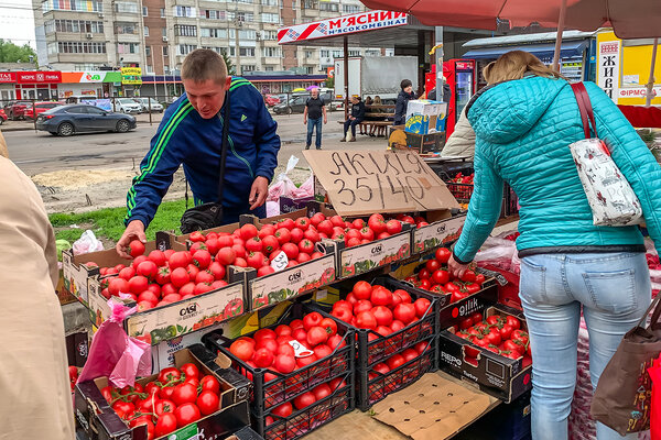 Если урожай помидоров выдался особенно богатым, продавцы могут устроить настоящую распродажу, предлагая их по фантастически низкой цене в 35 грн (около 84 руб).