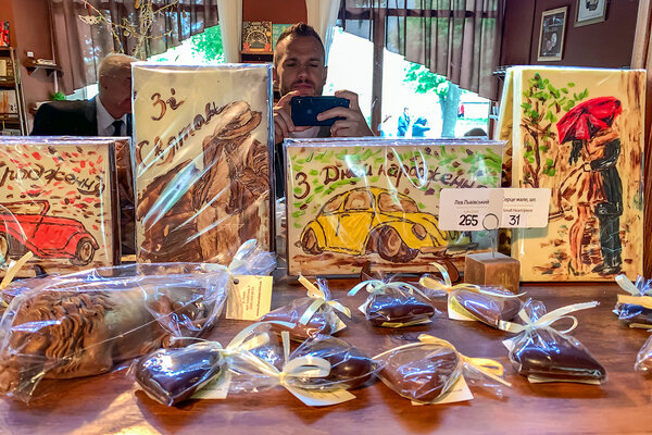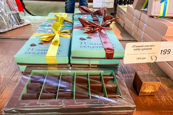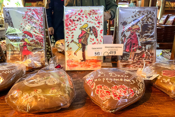 Казалось бы, Украина — не самая богатая страна, но в таких нишевых заведениях цены могут удивить. Например, плитка шоколада, расписанная вручную, стоит 420 гривен (около 1000 рублей). Для местных доходов это очень серьёзная сумма.