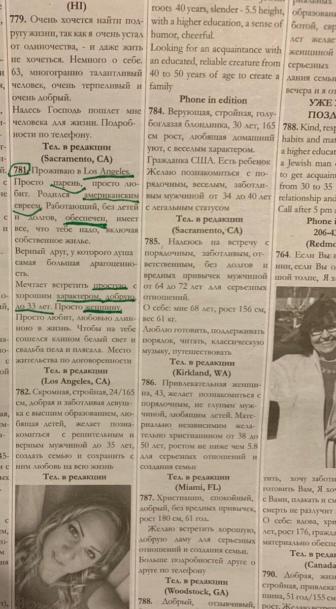 3. Муж привез из русского магазина газету, которую издают наши соотечественники за рубежом. Он знает, что я люблю газеты, а эта еще и на родном языке. Оказалось, что газета необычная — в ней публикуют объявления о знакомствах. И читать их невероятно интересно, я уже несколько дней с удовольствием их изучаю.