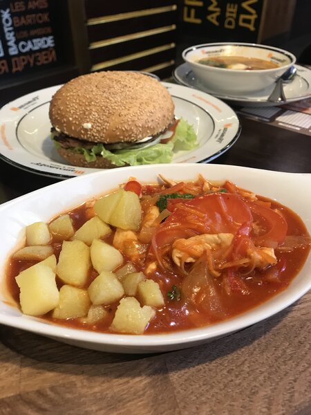 Второе заведение — это столовая «Вилка-ложка», известная во многих сибирских городах. В последнее время здесь стало заметно лучше: меню стало разнообразнее, а к чистоте относятся внимательнее. Это место, где действительно можно поесть дёшево и при этом неплохо.