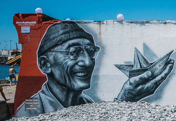 Однако в Сочи есть одно граффити, которое резко выделяется на фоне остальных. Оно скрыто в малопосещаемом туристами завокзальном районе Ареда, якобы не было согласовано с властями и обладает откровенно провокационным форматом.