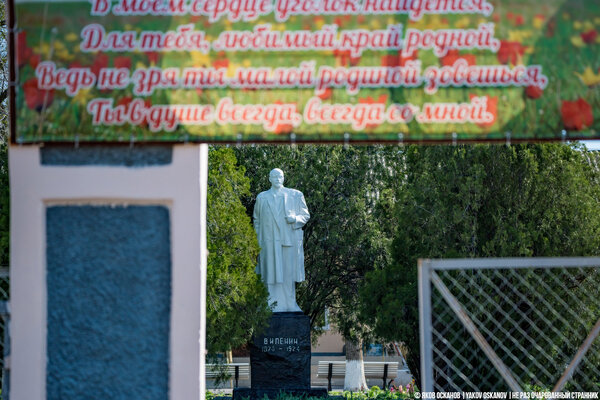 И вот он, Волочаевский! Нас встретили душевные, хоть и потрёпанные временем, стихи о малой родине на стенде. А добродушный взгляд памятника Ленину словно подбадривал: «Не волнуйтесь, ребята, здесь вы точно найдёте, чем подкрепиться».