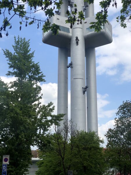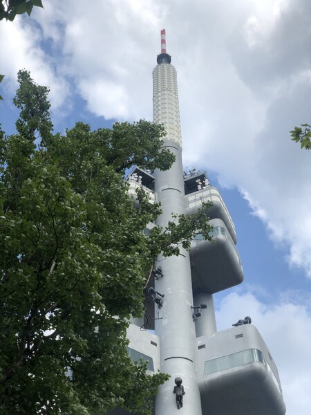 Если подойти к башне ближе, можно разглядеть необычное украшение — фигурки младенцев, карабкающихся по её опорам. Их установили в 2000 году как временную инсталляцию, но горожанам скульптуры так полюбились, что стали постоянными. Автор этой провокационной работы — знаменитый своим эпатажем скульптор Давид Черни. У меня собрана целая коллекция его неординарных творений, и я обязательно расскажу о них отдельно.