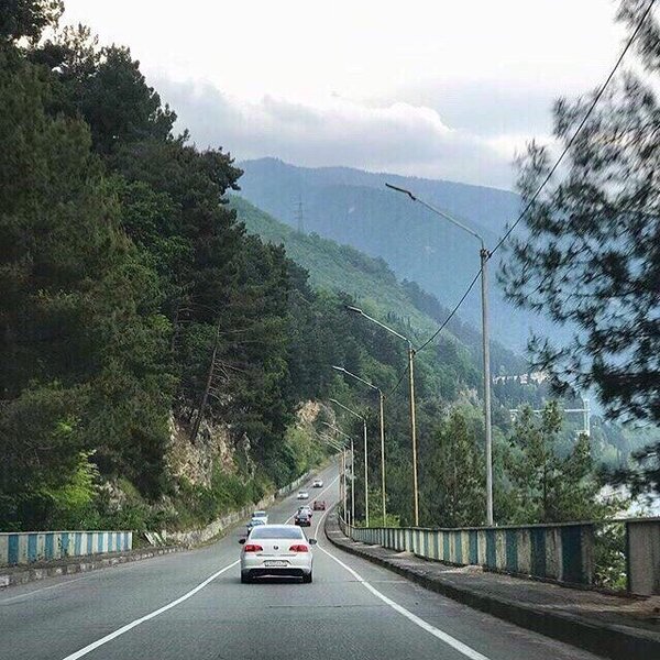 Нашли машину до Пицунды, погрузили вещи и устроились внутри. Салон был почти полон, что удивительно для несезонного времени. Кроме нас с ребёнком и ещё одной семьи с малышом, было две девушки-туристки, остальные — местные жители.