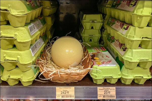 Рядом с сырной полкой обнаружил и другие товары не для ежедневного бюджета пенсионера, например, те самые страусиные яйца.