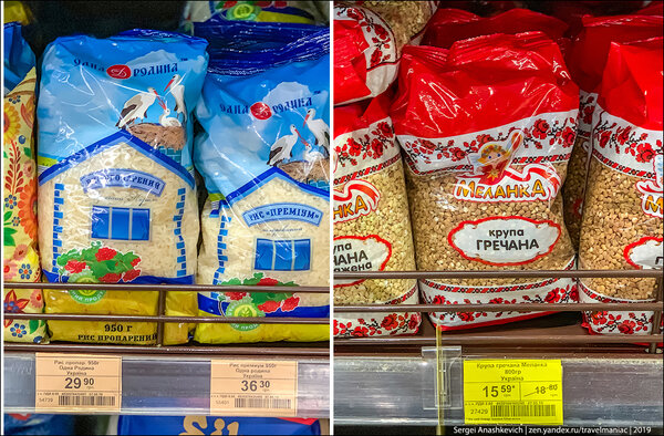 Гречка по акции — 15,59 грн (37,4 руб), рис — 29,90 грн (72 руб.) за килограмм.