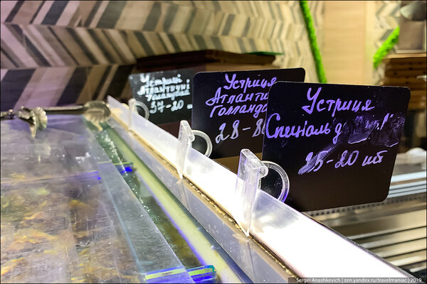 Для ценителей есть даже устрицы: от 25 грн (60 руб) до 37 грн (89 руб) за штуку!