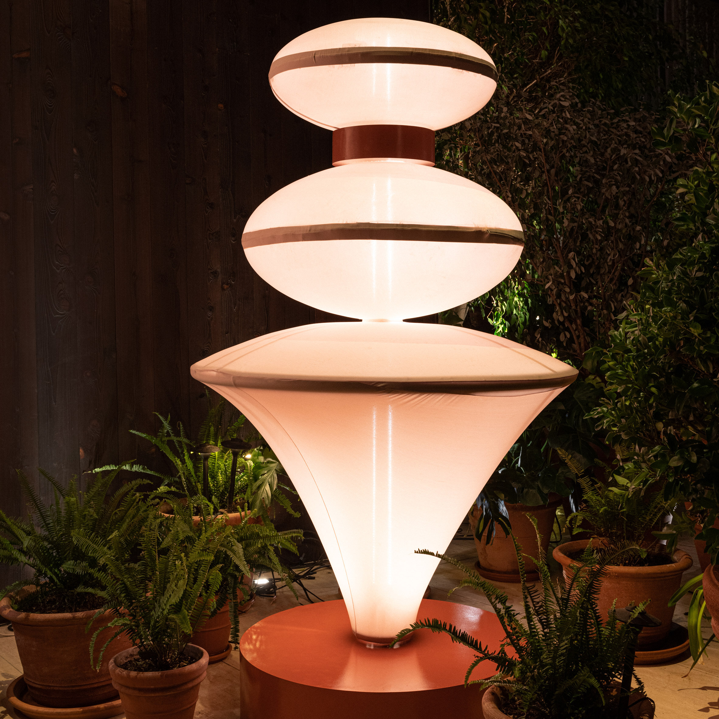 Три фигуры медленно вращаются и светятся - на ёлку, конечно, похоже мало, но так вот решили сделать в недавно открытом филиале West Hollywood отеля Edition.