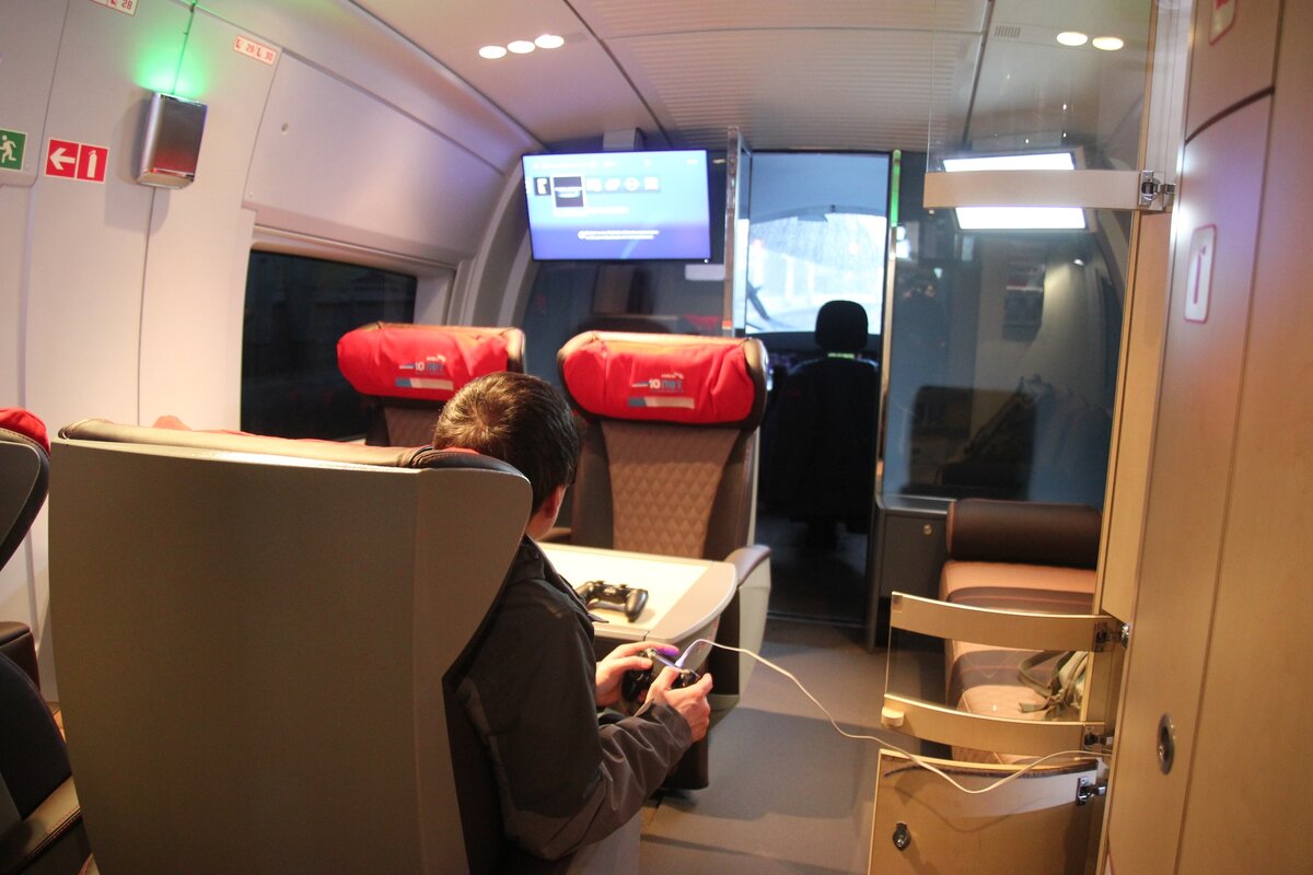 Мониторы, розетки, индивидуальное регулировка освещения есть и в новых, и в старых «Сапсанах». Но в новом поезде добавили приставку Play Station, так что можно поиграть в видеоигры.