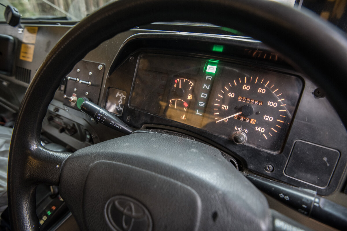 Вот он стоит в серой спецовке под проливным дождем, а за спиной высится его любимое хобби и одновременно наше транспортное средство — Toyota Mega Cruiser. Списанный из Японии военный внедорожник, у себя на родине он предназначался прежде всего для Сухопутных сил самообороны. Оформленный как гражданская машина, автомобиль теперь называется «бездорожник Амгу».