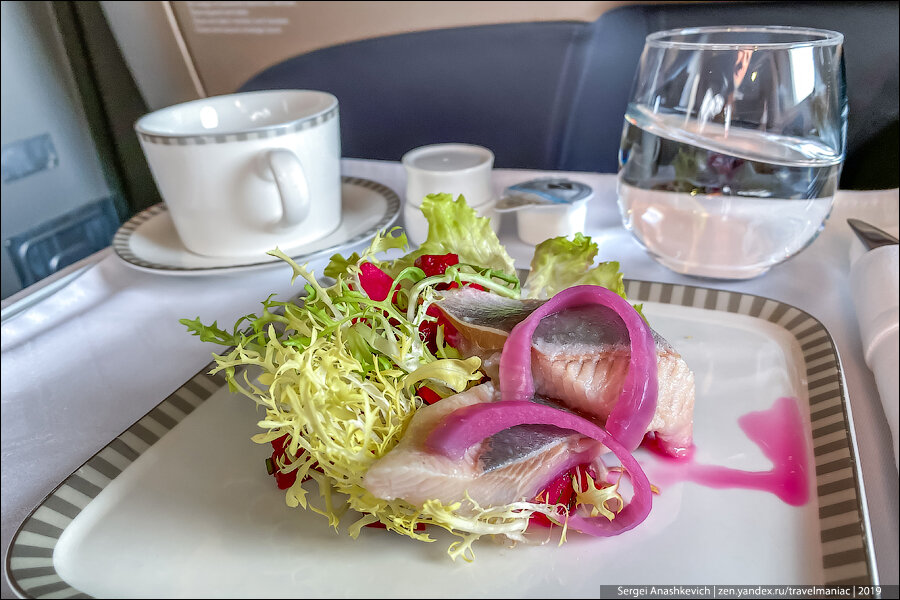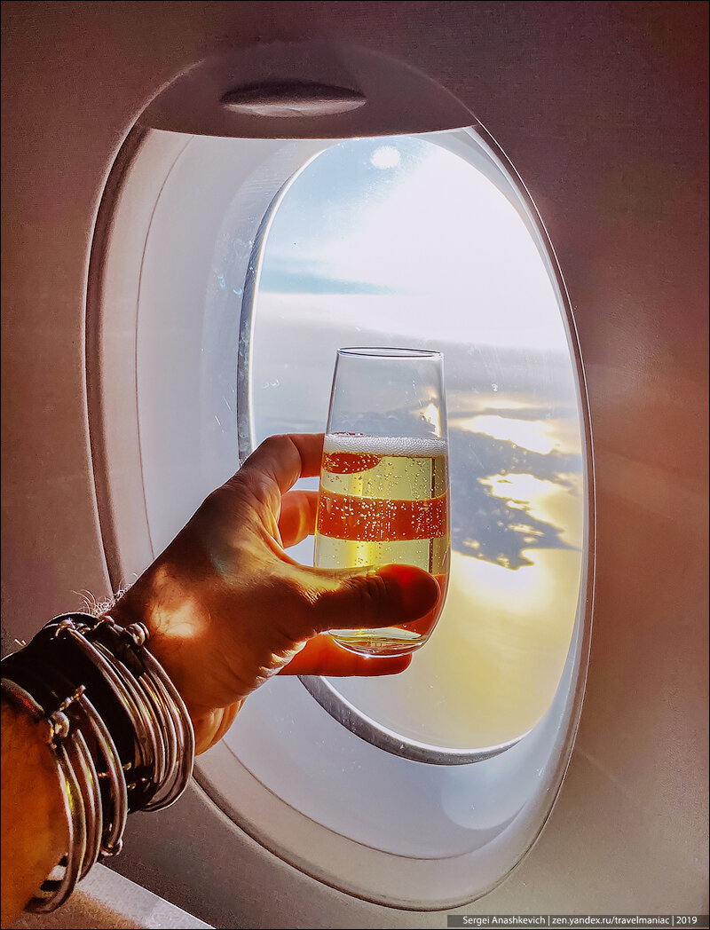 Стюардесса предлагает шампанское, вина, что покрепче, вместе с соками, чем, кофе и водой. А между делом принимает заказ на завтрак, который ты можешь выбрать из двух блюд. Яйца бенедикт или шведскую селедку? Шведскую селедку или яйца бенедикт?