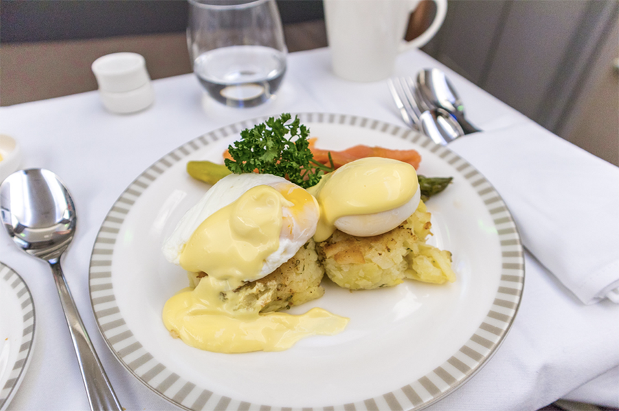 С ними тоже все отлично! Идеально сваренный пашот (интересно, его прямо на борту готовят?), голландский соус и картофельные крокеты вместо булочки из традиционного рецепта. Кстати, отличная замена, такой вариант мне понравился гораздо больше, чем на хлебе.
