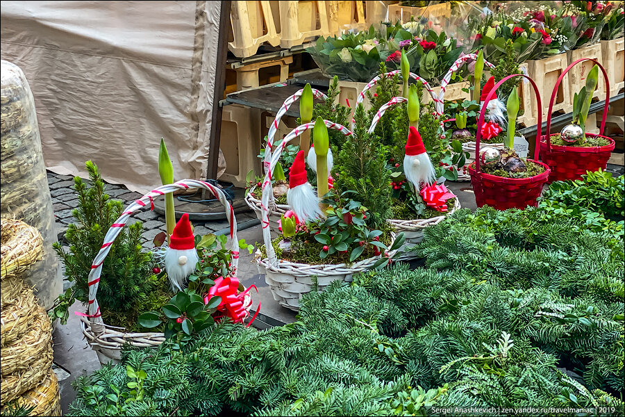 Ну и главной неожиданностью шведского ёлочного базара стали для меня вот такие необычные новогодние гномики в корзинке.