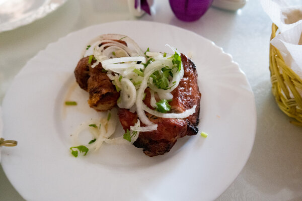 Мы заказали шашлык из мякоти свинины. Он действительно оправдал ожидания: мясо было сочным, хорошо прожаренным, без излишка перца и не пересушенным. Качество порадовало.