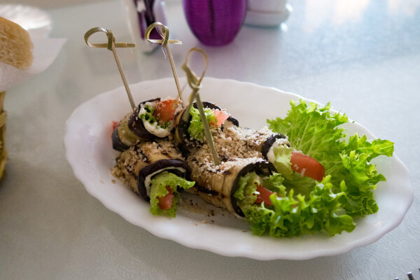 Рулетики из баклажанов — вкусная закуска.