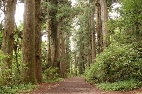 Одна из главных достопримечательностей — аллея японских кедров, или криптомерий. Прогулка по этой километровой дорожке считается целебной, ведь воздух, насыщенный фитонцидами этих деревьев, благотворно влияет на здоровье. Японцы глубоко верят в силу кедра. Существует даже поговорка: «Зачем русским лекарства, если у них есть кедровые орешки?» Считается, что регулярное употребление этих орехов защищает от болезней, а загаданное рядом с древним деревом желание обязательно сбудется.