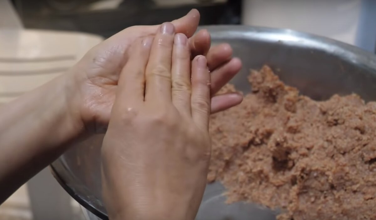 Состав котлет простой — очень мелко порубленное мясо, лук, специи и булгур (дробленная пшеница). Я думаю, что секрет блюда именно в последнем ингредиенте. И еще в особой методике фаршировки. Я не сразу приспособилась, но поискала видео, нашла несколько методов, и теперь обворачиваю фарш вокруг пальца, чтобы внутри было место для начинки.