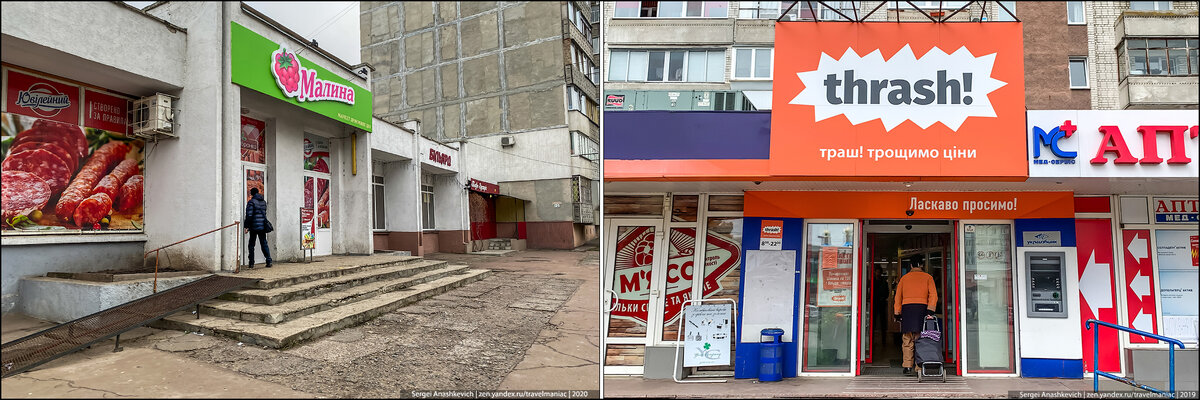Когда я зашёл в украинские супермаркеты, рассчитанные на людей с небольшим достатком, первое, что бросилось в глаза — это их крайне скромный, даже несколько удручающий вид. В прямом смысле слова: одна из сетей носит говорящее название «Трэш»… Другая популярная сеть — «Малина» — часто занимает помещения ещё тех самых советских магазинов, и, поверьте, там с начала 90-х мало что изменилось.