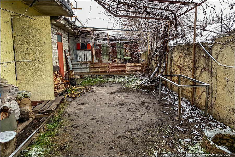 «Свежий воздух» у Димы действительно был свой. За гаражом обнаружился уютный дворик с поленницей дров. Летом, как рассказал друг, вдоль стен растут огурцы и помидоры, а в центре есть идеальное место для того самого мангала.