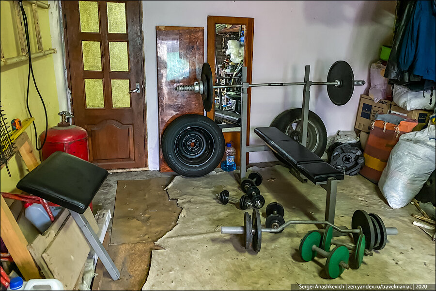 Оказалось, за этой дверью скрывалось еще одно помещение. Рядом с входом Дима организовал мини-спортзал — висела боксерская груша, лежали гантели.