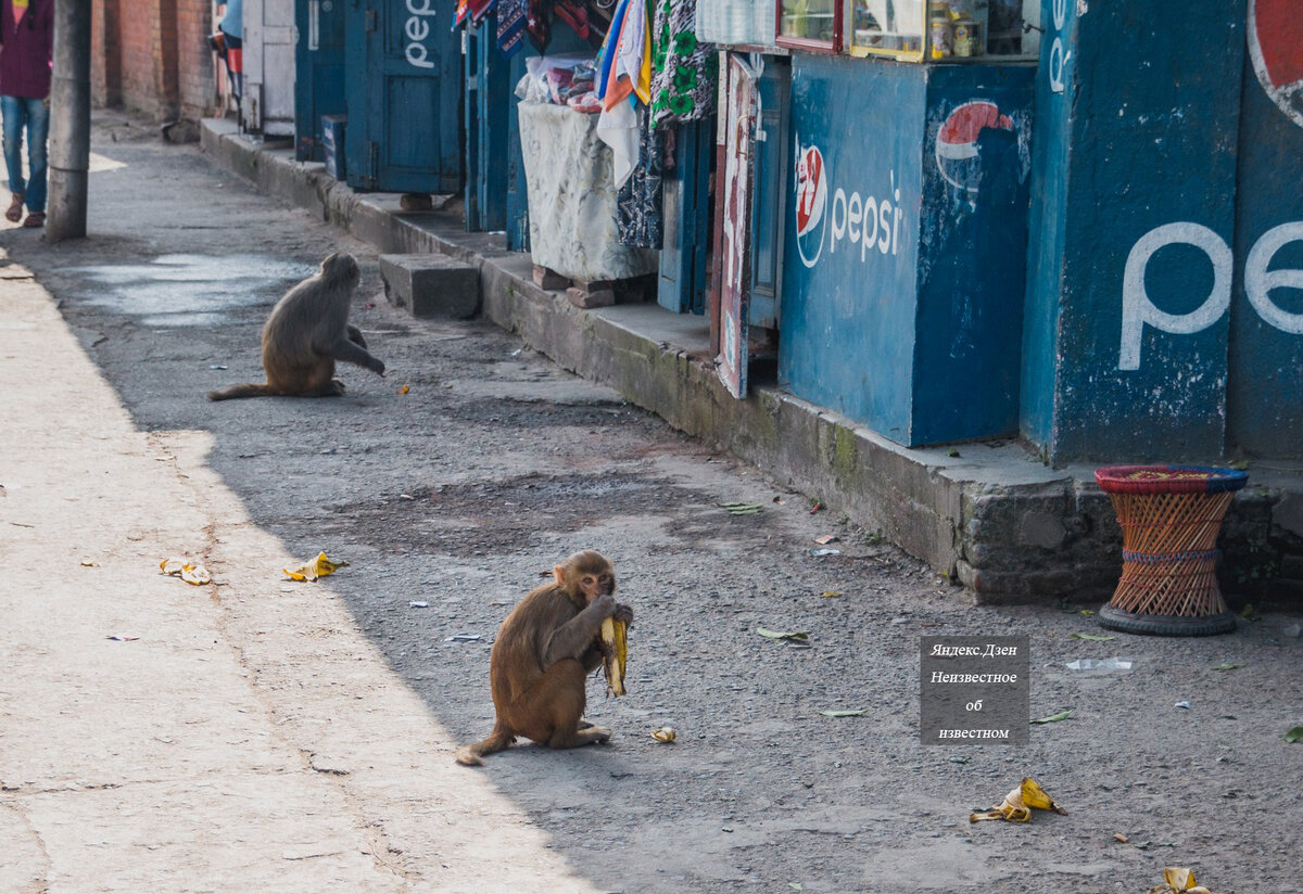В Катманду существует даже специальный «Обезьяний храм» (Сваямбунатх), где макак почитают и подкармливают монахи. Однако не все так безоблачно: у многих служителей храма при себе есть рогатки на случай агрессивного поведения животных. А перила и карнизы зданий нередко обвиты колючей проволокой, чтобы отвадить непрошеных гостей от проникновения внутрь.