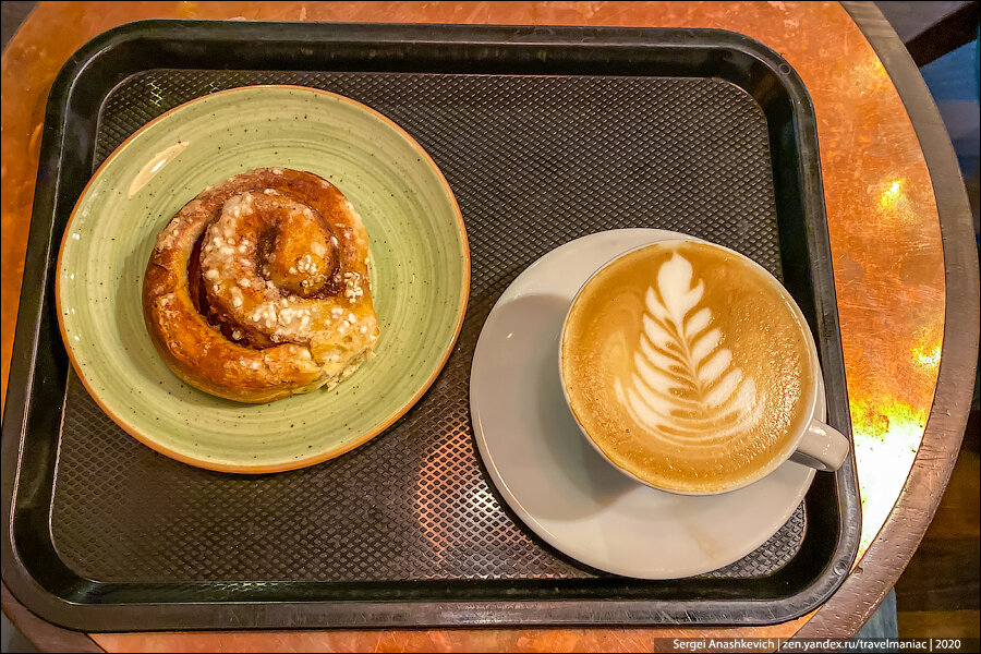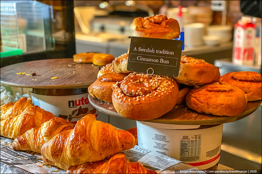 Оказывается, в Швеции не принято готовить завтрак дома — большинство жителей предпочитают уличные кофейни или кондитерские, которые открываются с самого утра. В таких местах тебе не предложат яичницу, бекон или сырники — только выпечку и кофе. Пройти мимо невозможно: аромат свежей сдобы буквально витает в воздухе и манит зайти. Вот и я поддался этому соблазну — даже не пытался подсчитать, во сколько мне обойдётся булочка с напитком. Внутренний голос настойчиво твердил: «Бери!»