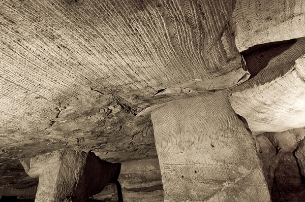 Именно по этой причине была отвергнута и гипотеза о том, что это могла быть обычная каменоломня, откуда брали материал для местных построек. С другой стороны, следы инструментов на стенах видны невооружённым глазом — это характерные параллельные борозды, оставленные каким-то орудием. Именно эти следы и весь комплекс в целом стали благодатной почвой для рождения самых смелых конспирологических теорий.