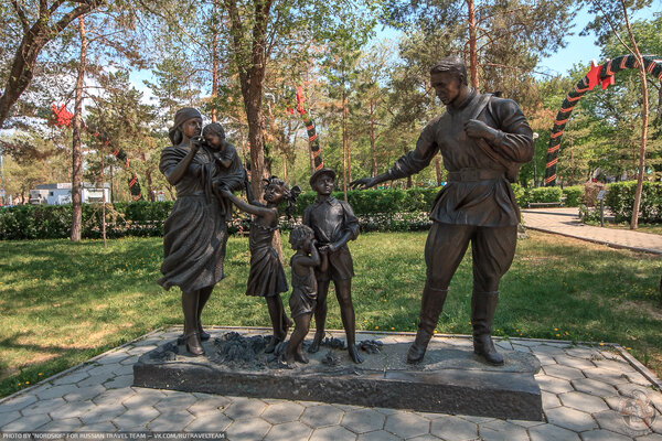 Одна из трогательных скульптур — «Возвращайся с Победой», которая напоминает о личных историях и подвигах.