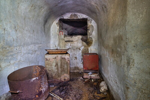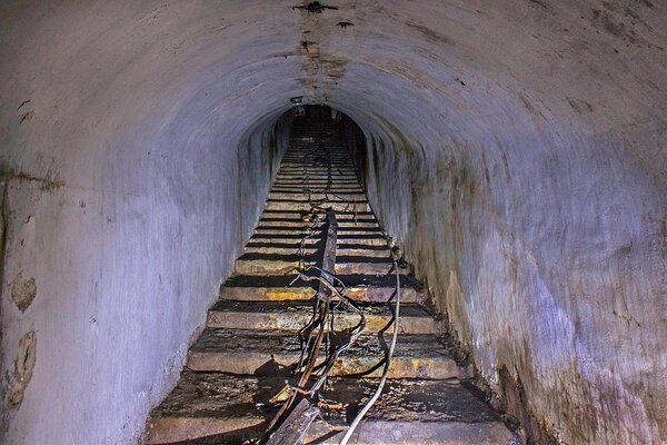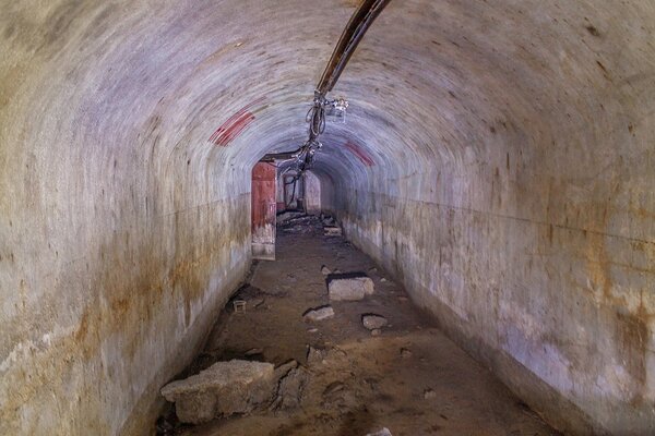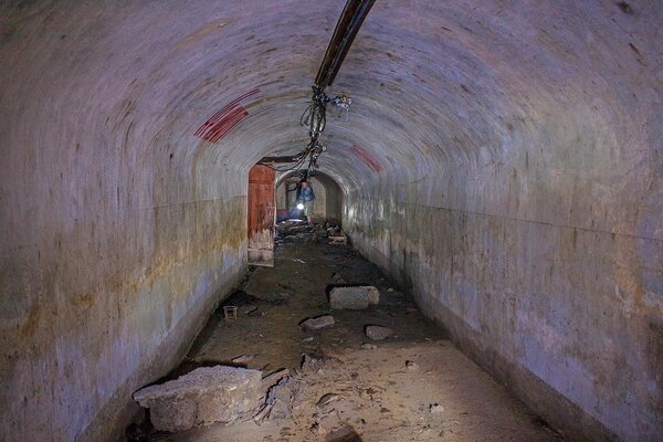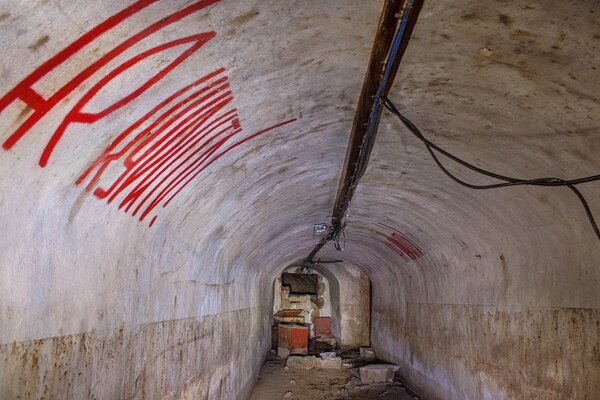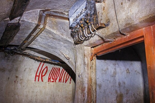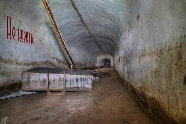 Сооружение очень старое, его достраивали уже в 1940-х годах, а начали проходку, вероятно, ещё в 1930-х. Спустившись по лестнице, попадаешь в коленчатый подходняк — элемент, предназначенный для гашения ударной волны.